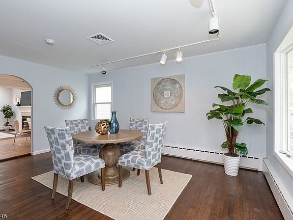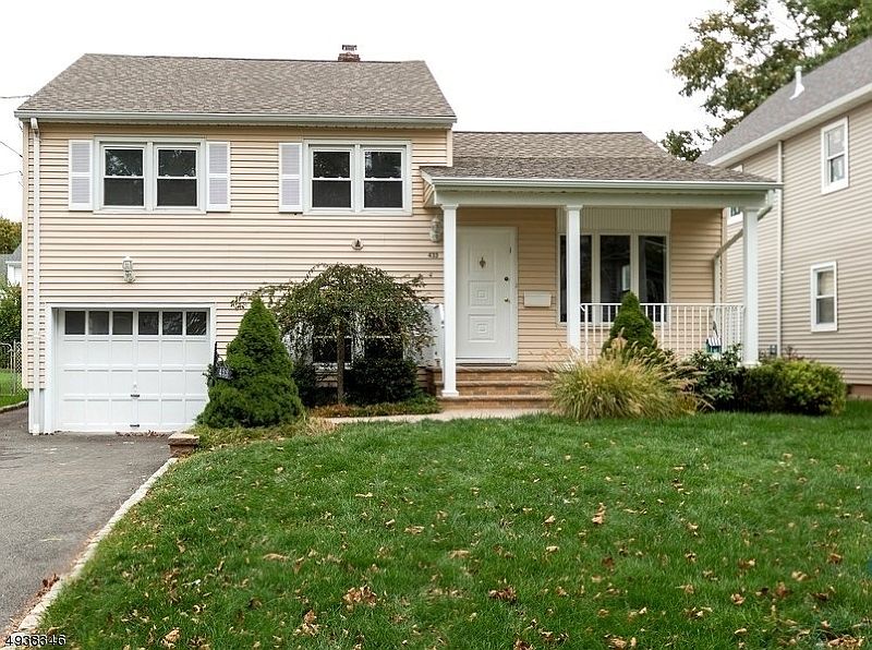Move in ready! Lovely custom split offers first floor master bedroom suite with updated bath and large bay window! Tons of light fills this home with beautiful hard wood floors, sparkling white kitchen with stainless steel appliances, formal dining room, and living room with vaulted ceiling, wood burning fireplace, and sliders to covered deck overlooking the private fenced yard! Upstairs are three bedrooms and full updated bath. Lower level includes a family room, laundry and mud room with access to outside and garage! A great place to call home! Close to schools and 2 blocks from bus to NYC.