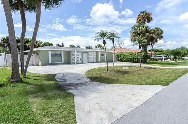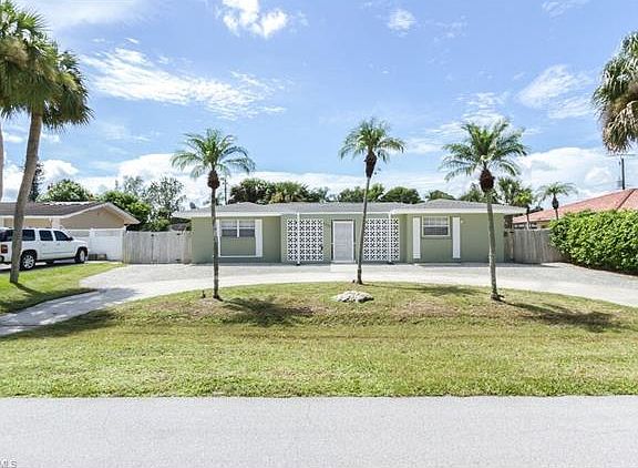Pool home with a spacious floor plan. This home has a beautiful entry oasis that is screened as well as private. Interior features two master bedrooms with en suites. The second master bathroom also can serve as a pool bath, with access to the screened lanai. The laundry is hidden in the kitchen/dining area. Privacy fence in the entire back yard for your children and/or pets. The concrete circular driveway offers plenty of parking and makes for convenience. You will find a great park within walking distance to the home. This home is located close to local shops, restaurants, gas stations and only a 10 mile drive to local beaches and downtown Naples. Located in a non gated community without any HOA fees!! Make this your dream home today!