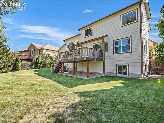This beautiful property features a well-maintained 4-bedroom, 4-bathroom open floor plan with an oversized 3-car garage. The front and back yards are immaculately landscaped, complete with Trex decking and stunning mountain views. With multiple living areas on the main floor and basement, 4 spacious bedrooms, and an office/workout room, there is plenty of space for everyone. The home is located in the highly sought-after District 11 school district and is close to shopping, Peterson Air Force Base, and the United States Air Force Academy. The quiet neighborhood offers mountain views, green space with walking trails, and a convenient location for all that Colorado Springs has to offer.
