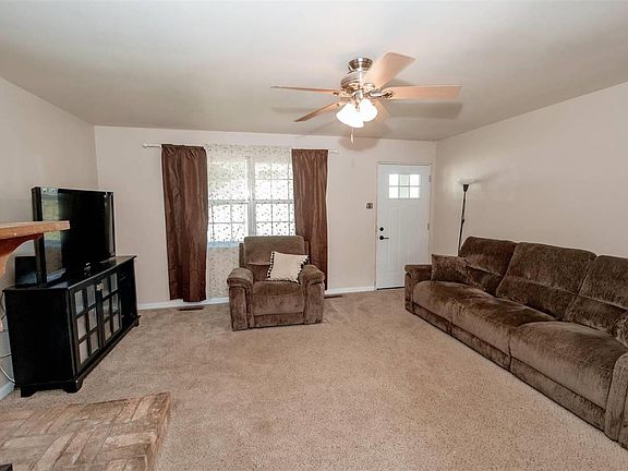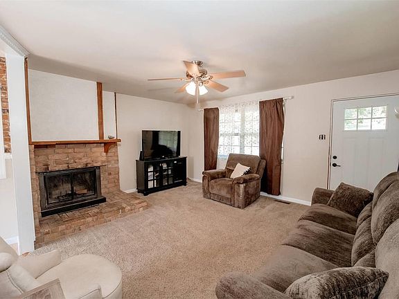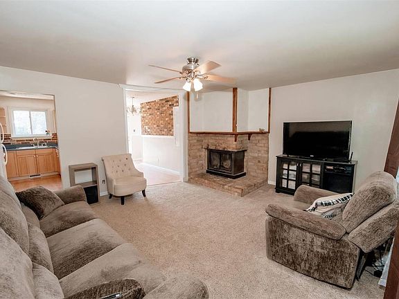 Move-in ready ranch with covered front porch, brick front, & freshly painted interior. Spacious living room offers a corner, brick, wood-burning fireplace with double wall flue, ceiling fan, and light. Remodeled kitchen and breakfast room sport quality cabinetry, ample counter space, recessed lighting, and pantry. Main level has 3 carpeted bedrooms with ceiling fans and lights, and 1.5 baths. The sliding glass door from the breakfast room opens to a huge 17' x 13' refinished deck which over looks the beautiful, partially-fenced, 1/2 acre, level lot. The lower level is partially finished basement, including a possible 4th bedroom, and work room. Basement has a walkout with a sump pump at the basement door. Check out the newer electrical panel and hook up for an external generator. There is also ductwork for a basement wood burning stove. Don't miss the carport and 16' x 10' shed. Extras include new front door, 6 panel white interior doors, attic fan, & some thermal windows.