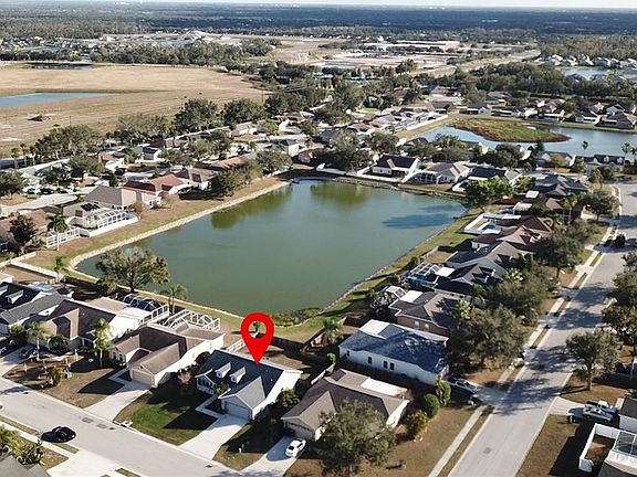 One or more photo(s) has been virtually staged. POND-FRONT | MOVE-IN READY | ONE STORY Built in 2002 and located in the heart of Parrish, this beautifully maintained one-story home offers the perfect balance of modern comfort and small-town charm in a thriving, sought-after community. This 3-bedroom, 2-bath home with a 2-car garage is truly move-in ready and situated in a Top-Rated School District, including the Blue-Ribbon Annie Lucy Williams Elementary School of Excellence. A large, welcoming covered front porch sets the tone as you enter freshly painted interior/exterior completed in 2024, complemented by updated plank-style flooring throughout. The spacious great room features high vaulted ceilings and panoramic pond views, creating a light and airy atmosphere ideal for relaxing or entertaining. The adjacent dining area flows seamlessly into the kitchen, which is equipped with Newer GE Stainless Appliance package, large single basin stainless sink, a pantry closet and a breakfast bar for casual dining. The primary suite serves as a peaceful retreat, offering a generous walk-in closet, an en-suite bath with a large, updated roll-in tiled shower and an updated ceiling fan. A split-bedroom floor plan provides added privacy for guests or family members. Step outside to a large, fully fenced backyard with patio space and serene pond views. Additional highlights include a new roof (2019), A/C replacement (2022), new back gutters (2024), updated lighting, modern ceiling fans, and Whirlpool Washer and Dryer included. The spacious garage features built-in wood shelving and an automatic opener. Enjoy low HOA fees, No CDD Fees and easy access to Kingsfield community amenities, including a Community Pool, kiddie pool, covered gathering area, two playgrounds, basketball court, dog park, and regular community events. X Flood Zone – No Flood Insurance Required No flooding during recent storms~ A peaceful pond-front retreat in a vibrant, growing community. Conveniently located just minutes from US-301 and I-75, with convenient access to shopping, dining, Ellenton Outlet Mall, boat ramps, and Gulf beaches. Sarasota, Bradenton, Lakewood Ranch, Tampa, and St. Petersburg are all within easy reach.