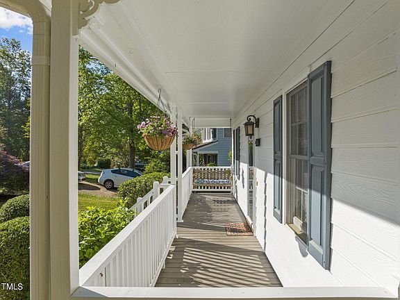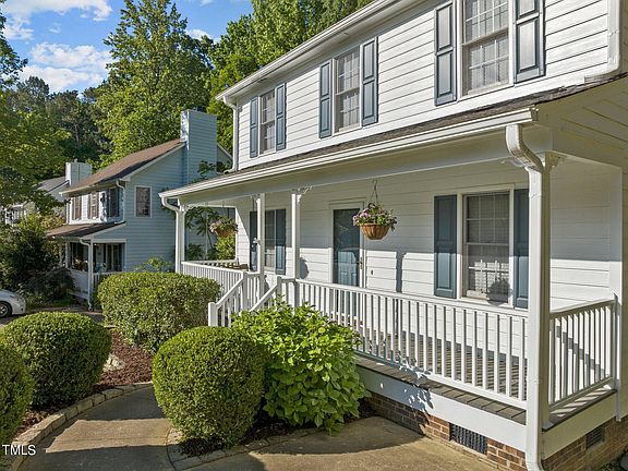You can't find this type of character in the new builds today! Located on a private fenced in lot backing to the Eno trails this property has it all. The front porch has a swing to enjoy and as soon as you enter the home the built-ins in the office/flex room makes you feel at home. The living room is cozy with plentiful natural light and a fireplace. The kitchen has a built in breakfast nook, plentiful cabinet space/counter space and SS appliances. The primary bedroom on the second floor has a tray ceiling, 2 closets and an updated bathroom(2021). Two additional bedrooms and a full bath cap off the second floor. The backyard is a dream with plentiful trees, a natural buffer provided by the Eno, a large deck for entertaining and a patio to see it all. Community/HOA includes a pool!