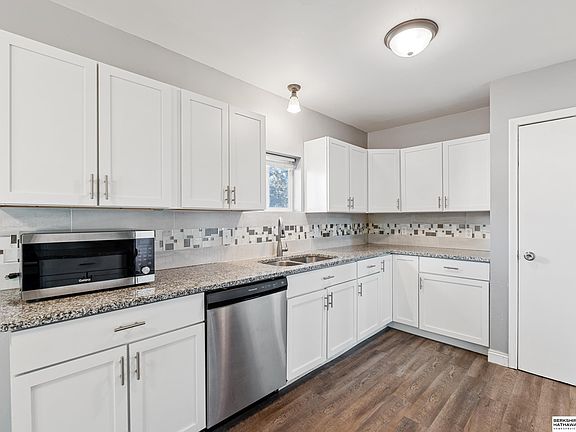 Discover this beautifully updated 4-bed 2-bath home, perfectly situated on a large lot close to a park, basketball and tennis courts, a golf course, the lake, and all the attractions of downtown Omaha. The kitchen shines with granite countertops, sleek newer cabinets, and stainless steel appliances, perfect for cooking and entertaining. LVP flooring flows throughout the kitchen, hallway, and family room, while newer carpeting adds warmth to all bedrooms and the great room. Convenience is key with a stacked washer and dryer included, making this home move-in ready. Whether you're enjoying the spacious lot or exploring the nearby amenities, this property offers a blend of relaxation and recreation in an unbeatable location. AMA