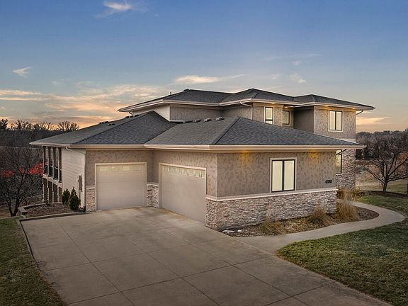 Amazing 1.5 story in Clive. With over 6,000 sq ft of finish this property combines amazing architecture, stunning views, location and privacy. The main floor has a soaring great room w/ concrete fireplace and accent lighting. The gourmet kitchen has a walk in pantry, brand new glass mosaic backsplash, double ovens and dual center islands perfect for cooking and entertaining. Main floor dedicated office w/ natural light, double doors and a massive master suite. Off the kitchen is the large mudroom/laundry area. The master includes a huge bedroom, closet and bathroom. The large bath has 8 shower heads and a deep soaker tub. The finished walkout LL has a huge wet bar w/ seating, double sided fireplace, newly finished polished concrete, a theater area, pool nook, 5th bedroom w/ a steam shower and access to the rear patio and fire pit. The exterior also includes a large wrap around and covered composite deck over looking mature trees and a trail. Too many upgrades and extras to list. This home is located on a quiet cul de sac and less than 20 minutes to anywhere in the metro, Waukee NW Schools. Geothermal heating and cooling. All information obtained from sellers and public record.