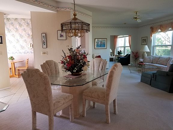Fountain, lake and golf course views. Paver brick patio. Quartz kitchen counter-tops, white cabinets with crown molding. 2 large bedrooms with built in closet organizers (master has large walk-in). Remodeled master bathroom with granite counters. Plus and additional large den/TV room. More storage in laundry room and new washer and dryer. Relatively new kitchen appliances. All new heavy duty windows! Full slider doors with screens in carpeted lanai overlooking golf course and pond. One of the larger units in Pinebrook. Almost 1500 sq. ft. of living space PLUS lanai and the attached garage with tall built-in storage cabinets. This condo is FULLY FURNISHED. Ready to move in :)