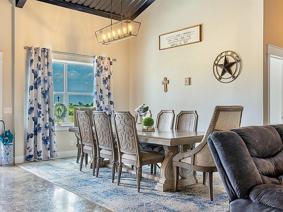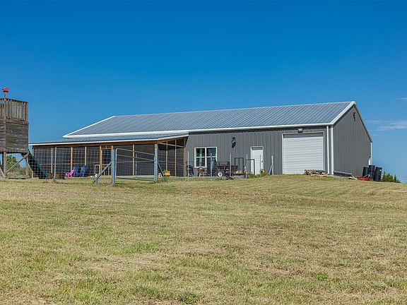 This custom barndomimum was built in 2021 and has hilltop views! Each bedroom is in a corner of the home with the open dining, living and kitchen in the center. No bedroom shares a wall. The current owners added a man cave/office area above the shop, adding an approximate 300 sf. The shop has 3 roll up doors and a truck lift. The current owners have also added a great concrete area in the front of the home and a covered screened in porch on the back of the home. The gorgeous back porch addition has a fenced in yard too. The land is cross fenced to have livestock or even a FFA project.