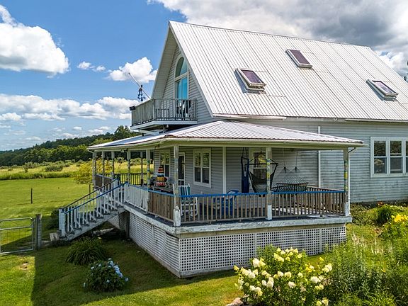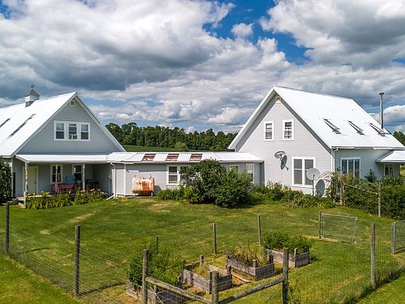 Your dream property awaits! 100+ private acres just waiting for the avid hunter, gardener, or if you're simply looking for peace and serenity, this property has it all! The land is a combination of open fields, lots of woods, a nearby pond used by current owners for swimming, and has plenty of wildlife. The house was designed and built to maximize the panoramic views from all points, with lots of high windows, and a wraparound porch, and is surrounded by well-designed flower beds and mature perennial gardens. Much of the yard is fenced-in to keep your pets safe. The "connector" joining the main house with the oversize garage contains a half bath, laundry and mudroom area, while the 2-story garage has been used as a workshop, 2nd floor art studio, and provides additional space for bedrooms and storage. There is an additional shower, toilet and utility sink in the shop area. The garage itself allows room for 3 vehicles as well as tractors, equipment, etc. Don't miss this one!