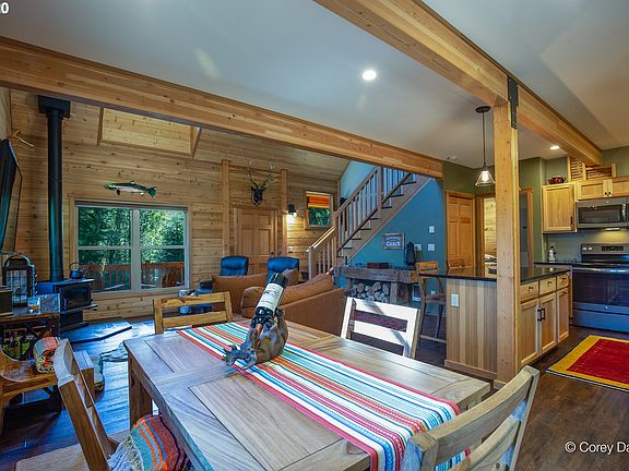 Cozy and comfortable solid wood Pan Abode cabin built in 2016. Large 3 bay pole barn shop for all your toys and projects. Located in the gated Riverbend community, on your own 5.36 acres of beautiful, private forest. Away from it all, but still only 15 minute driveto Manzanita, Nehalem, Bay, and beaches. Looping trails, enormous trees, a creek, and deeded community access to the North Fork of Nehalem River, across the street. Paradise found! Don't miss the video.