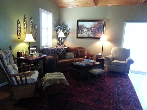 Great weekend getaway or full time home. Master Bdrm has Private Bath with double bowl vanity, tub/shower combo. Second Bdrm shares Hall Bath with Walk - In Shower. Kitchen has great cabinets and counter space. Enjoy morning coffee or evening fun on the 12 X 36 covered back porch. All overlooking private 1 acre stocked pond. This home boasts vaulted ceilings with custom wainscoting. Minutes away from Spaulding Boat Ramp, The Landing and Black Jack Marina. Shopping, golf and churches only 8 miles. This is a beautiful lake retreat for holiday and family get togethers. Also includes a 50 amp full RV hookup for extra guests.