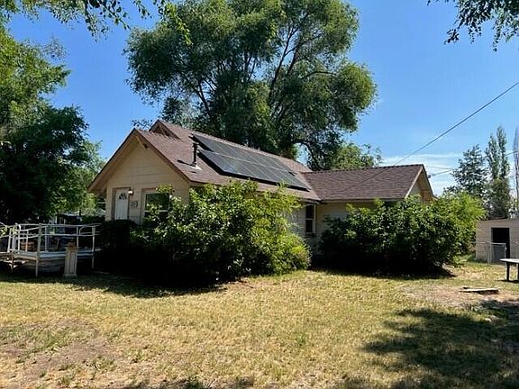A neat old farmhouse sits on .76 Acre, cross fenced, trees, small red barn, outbuilding for critters or cars and 1 car garage. Front side access to all. Room to build a shop! Lots of parking. 3 bed 2 bath on main level and big loft for extra beds or playroom. Handicap ramp and walk in tub. Big open kitchen dining/living area. Solar panels keep the electric bill down. Priced to sell.