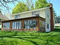 Exceptional view of Long Lake!! Well maintained, spacious home, open plan living area, bath on each floor and fireplace with a wood burning insert creates the setting. 2 bedrooms on the main floor have lake views. Kitchen is open to the living area and appliances are included. 63' of water front with sea wall and sandy bottom on an all sports Long Lake. Lake side well pump has underground pipe to 3 spigots for watering. There is even lake water to the 55x28 four bay garage with cement approach and is located on large tree studded back lot directly across the street -along with a 12x16 storage building w/ cement floor. Superior location on the lake! (6679)--------------------------------------------------------------------------------
