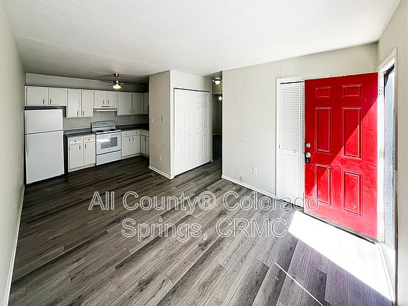 2 bedroom, 1 bathroom apartment for rent near Fort Carson Military Base and Cheyenne Mountain Air Force Station in 4-plex. Laminate wood flooring in this unit, from the entry, to the kitchen, hallway, and bedrooms. Great open floor plan with washer and dryer in each unit. Kitchen comes equipped with a refrigerator and electric stove. Water, sewer, and trash pickup included helping to keep monthly costs down. Shared backyard with the other 3 units. Near US Fort Carson Army Army Base, Cheyenne Mountain Space Force Station, and all the attractions of Colorado's front range. Owner may consider up to 2 pets upon approval, with additional pet deposit, pet admin fee, and Petscreening profile. Offered by All County Colorado Springs, CRMC. Call us today, or see more of our properties by visiting us online. Please note, if approved for this property, the longest we can hold off before starting a lease is two weeks from the ready date. *Renter's Insurance is required upon execution of lease. All County Colorado Springs provides coverage options with a 3rd party vendor. Inquire within for more details. Applicant has the right to provide All County Colorado Springs CRMC with a Portable Tenant Screening Report (PTSR) that is not more than 30 days old, as defined in 38-12-902(2.5), Colorado Revised Statutes; and 2) if Applicant provides All County Colorado Springs, CRMC with a PTSR, All County Colorado Springs CRMC is prohibited from: a) charging Applicant a rental application fee; or b) charging Applicant a fee for All County Colorado Springs, CRMC to access or use the PTSR.