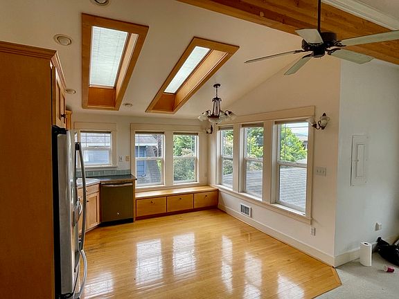 Welcome to the Garden sanctuary in upper Fremont! - Sunny and private 2-bedroom / 1 bathroom apartment in a 1914 craftsman duplex home on a quiet street in the highly sought-after Fremont neighborhood. Right around the corner from Lighthouse Roasters coffeehouse and short walking distance to a gourmet grocery store, great restaurants, yoga studio, highly rated schools, Woodland Park Zoo, and the No. 5 bus direct to Downtown Seattle. This home was owner-occupied and well-loved for the last 25 years, and this is the first time this apartment has been available in 19 years. With an open floor plan living area with cathedral ceilings and many windows & skylights, it is bathed in natural light. The front yard boasts a lush & established, low-maintenance PNW/Japanese garden. Amenities include: Stainless kitchen appliances including French door refrigerator, gas range with griddle, & dishwasher. filtered water faucet. Maple cabinets and kitchen/dining floors. On-site washer/dryer. Updated plumbing and electrical, with most lights on dimmers and hardwired smoke alarms. The unit has air conditioning, lots of storage, and a cedar deck with a panoramic view. Lease Terms: Available August 1st, after painting, carpet cleaning, and maintenance. Rent: $3250/month. Minimum 12-month lease. Application Fee: $55 per adult (18+) Refundable Security Deposit: $3250 First and last month's rent and a security deposit equivalent to one month's rent. Security deposit and last month's rent may be paid in installments per Seattle Municipal Code 7.24. Tenants are responsible for all utilities (water, sewer, garbage), electric, gas, and cable/internet. No smoking or vaping on the property. No Pets Allowed. Renters' insurance is required. AirBNB/VRBO, short-term leasing, subletting, etc. of any sort not allowed. Minimum credit score: 700+ or qualified cosigner All calls/emails will be considered pre-screening of potential tenants. Please text or email Kay at the listed contact for inquiries. Please, no phone calls. Thank you!