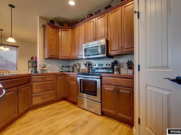 Gorgeous east side ranch style home. The Rainer model. Offering an outstanding mountain view. Beautiful oak hardwood flooring, open floor plan. Tray ceiling. Great kitchen design with lighted pantry, tiled granite counter tops, stainless steel appliances. Living room offers gas fireplace, lots of windows and natural light. Generous sized master bedroom, 5 piece bath with tub, separate tub/shower, double sinks and walk-in closet.
