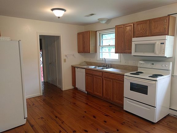 Spacious brick ranch with lots of room to spread out! Formal living room with hardwood floors in addition to a carpeted family room. Large, eat-in kitchen with stove and refrigerator, & dishwasher provided. Washer and dryer hookups in utility room off the kitchen as well as a half bathroom across the hall. All bedrooms have hardwood floors. All electric, central heating & cooling. Large exterior shed for additional storage.