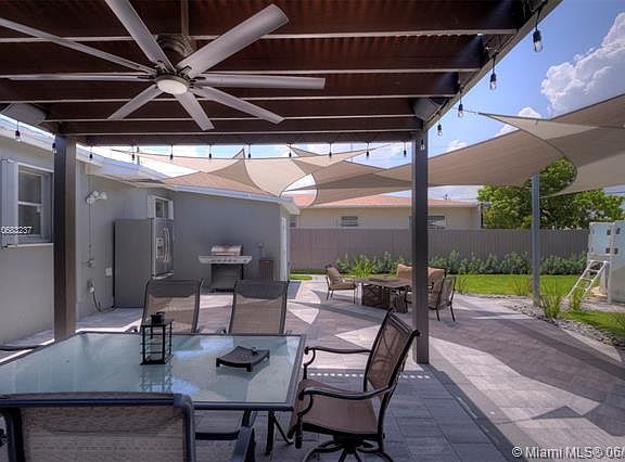 BEAUTIFULLY REMODELED SINGLE FAMILY HOME! Interior features NEW HIGH EFFICIENT A/C, REMODELED KITCHEN with beautiful QUARTZ COUNTERTOPS, SS APPLIANCES, and under cabinet lighting. PORCELAIN TILE throughout SOCIAL areas with BAMBOO FLOORS in bedrooms. Master bedroom has a LARGE WALK-IN CLOSET with custom built in cabinetry!. Both BATHROOMS have been REMODELED with HIGH END FIXTURES and QUARTZ COUNTERTOPS! Exterior features include NEW ROOF with architectural shingles, ACCORDIAN SHUTTERS, TANKLESS water heater, NEW FENCE, Custom shed with electric, full house generator hook up, and automatic sprinkler system. INCREDIBLE OUTDOOR ENTERTAINMENT AREA with , Pergola, sun canopies for shade, outdoor lighting, CUSTOM PAVERS, above ground pool, and built in entertainment system.