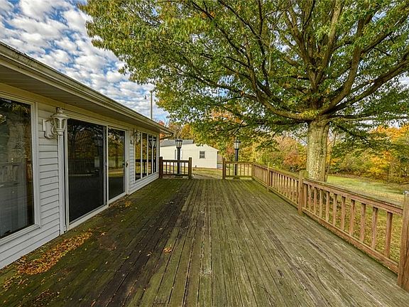 Large, Brick Ranch on 3.71 Acres ! Eat- Kitchen includes all appliances. 3 Good- size Bedrooms and 3 Full Baths. Partially finished Lower Level with bedroom (4th) and Full bath, great for extra space for entertaining and an office. Handicap accessible. Spacious deck overlooking beautiful acreage plus pond & outbuilding 27x24.
