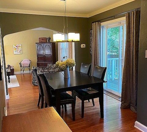 Charming two-story Beaverdale brick, located in the heart of Beaverdale; spacious living room with wood-burning fireplace; hardwood floors throughout; custom blinds; incredible kitchen with attractive high-end cabinetry; subway tile backsplash; all appliances stay. Dining area is open to the kitchen and living room. Sliding glass doors to deck and backyard. Perfect open floor plan for entertaining. Upper Level: Master bedroom features door to quaint balcony, walk-in closet, and built-in shelving. Two additional bedrooms, both nice size. Full bath with white cabinetry, tile flooring, and granite counters. Lower Level: Rec/family room; half bath; laundry room; utility room and storage room; washer and dryer stay.