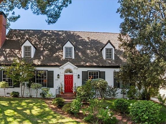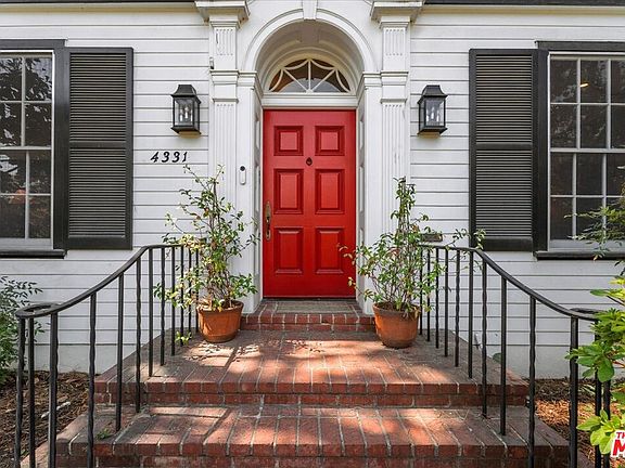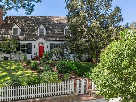 This elegant traditional home framed by a classic white picket fence resides above the street in the prestigious enclave of Toluca Lake. Professionally appointed with rich tones & touches throughout, this two story home exudes warmth, style & comfort. A formal entry connects the living room with fireplace & the dining room appointed with a chic chandelier while the spacious marble and stainless steel kitchen offers both a built in breakfast booth & a sitting area before a brick fireplace. Nearby is a convenient laundry room plus a home office and guest bedroom. Upstairs boasts a sophisticated primary suite with a vintage style clawfoot tub & sauna for a deluxe spa like experience at home. Two other bedrooms share another bathroom ideal for siblings or guests. Outside sliding French doors, a sprawling grassy lawn stretches across the thriving backyard before a sparkling brick lined pool and guest house - ideal for a home office or studio space. An array of top notch eateries, charming boutiques & grocery stores are blocks away as are two of the world's most iconic TV/film studios (Warner Brothers and Universal) - making this quaint area the perfect hybrid oasis blending glamorous Hollywood with small town America.