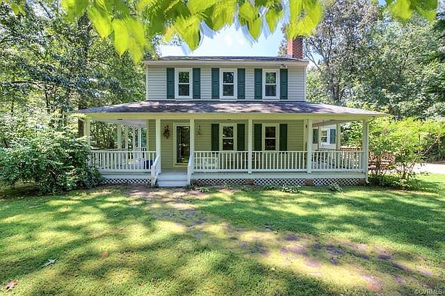 **NEW UPDATES!! Living room, dining room, master bedroom and hallway freshly painted along with brown trim downstairs and kitchen cabinets! Lookin; fresh, y'all!** . Welcome home to this beautiful two story colonial with a charming wrap around porch located on almost an acre and a quarter in Powhatan. Enjoy country living with small town convenience just 20 minutes from Westchester Commons. With a newer roof and windows, this cutie has three bedrooms, two and a half baths, a generous family room and a large laundry/mud room. The kitchen is open to the family room so the cook can see all that is going on throughout the downstairs. Upstairs you will find three cozy bedrooms with storage galore and two full bathrooms. Your private back yard is partially fenced in for your furry friends and this home is perfect for entertaining with an extensive circular driveway and side deck entrance. Hurry on, this one is priced to sell and will not last long!