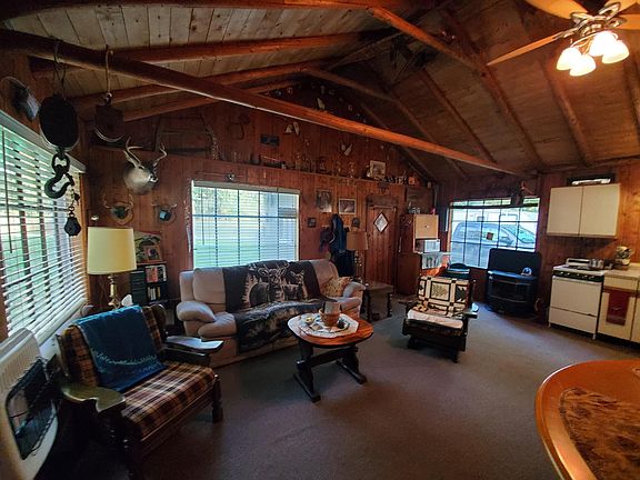 2 bedroom 1 bath with loft having plenty of cabin charm, modern construction bathroom and detached garage ...Located on no outlet road....Direct trail access, with miles of state land across the street...