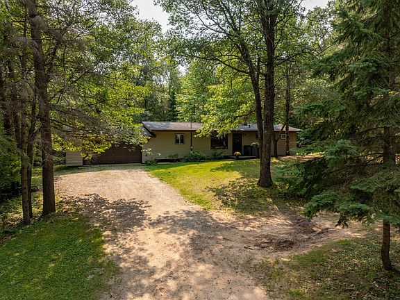 Convenient, country living is what you will find at this 3 bedroom, 1 bath home just minutes north of Rhinelander. The main level features a formal front entry, kitchen w/ ample cabinet space & peninsula seating, spacious living room w/ backyard views, a reading nook w/ attractive built-ins & deck access, a full bath, and three bedrooms, including the primary bedroom w/ smaller private deck overlooking the backyard. The lower level offers walkout access to a parklike backyard (campfires anyone?!), open space that could be finished for a family or rec room, laundry area, a dedicated storage room, and a well-lit workshop or hobby room with cabinet storage. Additional features include a tiered deck for relaxing & BBQ-ing, a 2-car attached garage, and additional parking space. The home is located in a quiet neighborhood great for walking and a public boat landing for access to the Rhinelander Chain of Lakes is less than one mile from the home! Septic tank new in 2023.