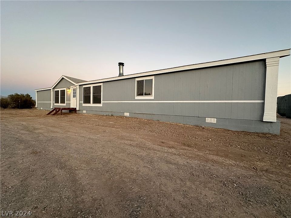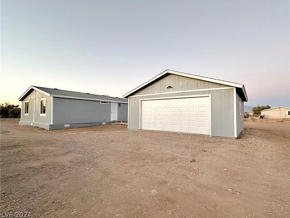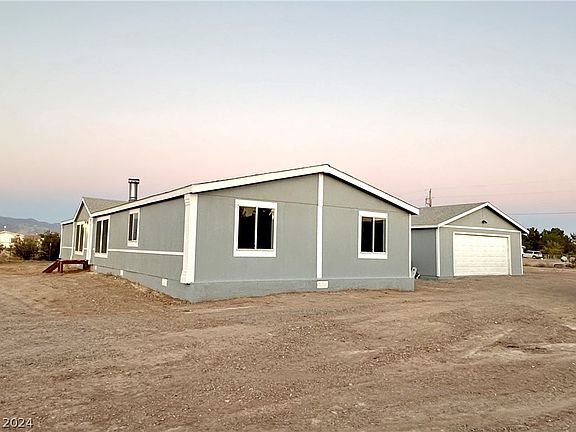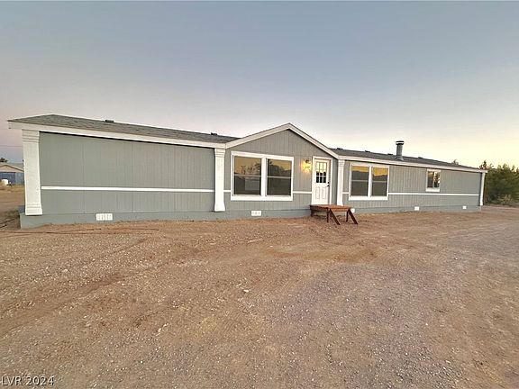 - This newly renovated mnfctrd home is perfectly rooted on the NW side of the valley. The convenient location offers a short trip to town or a stone throw away from CA state line. Sitting on just under an acre you'll be transported to a stress free mind space w/unobstructed Mt. Charleston views or the serene beauty of the NV desert. Over 2000sqft of modern living space, split floorplan, 4sizable bdrms.Primary rm offers a large W.I closet, remote fan & plenty of natural light. Appreciate the tastefully re-done primary bth w/double sinks, charming chip lapped accents & the remodeled shower, adds a touch of luxury. Kitchen's inclusive w SS applncs, quartz C.T's & distinguished Island perfect for casual dining/entertaining. Emraced w/luxury vinyl-plank & new modernized fixtures. Relax near the cozy wood fireplace.2car garage w/ample storage/parking. Private well/septic! Truly unlimited potential, call today & lets make it your very own