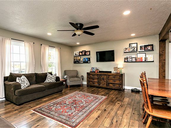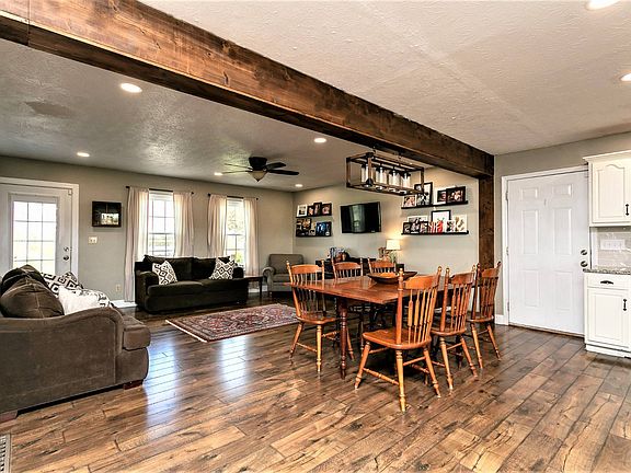 Ah you can almost get the scent of that refreshing country air from here. This 4 bed, 3 bath home is located in the Perryville Elementary school district and is perched on 3.552 acres (+/-) offering panoramic views of beautiful rolling countryside Central Kentucky has to offer. Starting the tour off is the desirable open living room/kitchen concept. This area is laid with a deep and rich colored woodgrain floor. Buffering the family area and kitchen is a dining area highlighted by a rustic setting from the charming light fixture and exposed beam running across the ceiling. Centered in the kitchen is a lovely island. The island and L-shaped counter are topped with delightful granite that pairs brilliantly with the white cabinetry. These white cabinets shine under the rows of overhead lights and pop from the contrasting handles. Filling the spaces between this magnificent cabinetry are the stainless-steel appliances (stove, dishwasher, refrigerator, microwave). This area and the rest of the home glows from the sun enticing windows that were replaced just 2 years ago. There is a full bathroom down the hall. This bathroom has a granite countertop vanity and neatly tiled floor. At the end of the hall are 2 spacious bedrooms. One bedroom has the same flooring as the family area and kitchen while the other has soft carpet. Speaking of flooring... all of the floors in the home have been upgraded and replaced within the past year. The carpeted bedroom is the primary bedroom. This bedroom has a walk-in closet and its own private bath. The bathroom sports gorgeous wood print ceramic tile, a wide vanity, and a shower that shows off stylish marble print tile. For an elevated touch... the shower also has an indented shelf with a decorative backsplash. The laundry room is on the first level conveniently located by the front entrance and providing additional cabinet space. Upstairs is a haven for the kids as there are 2 more enormous bedrooms plus a bonus room giving the kids plenty of room to play. Accompanying the upstairs is another full bathroom with updated characteristics similar to the other bathrooms (granite topped vanity and tiled floor). The home also has an attached 2-car garage with room to spare for a work bench and a place for those tinkering jobs. Outside you will enjoy hanging out anywhere as everywhere you go there are tranquil views of the countryside, and the home offers multiple places to enjoy these views. There is a large covered front porch that is ideal to enjoy an ice-cold refreshment and watch the world go by. To the rear of the home is a sizable deck that has been extended and replaced with new boards. You could simply throw out a couple of chairs just about anywhere in the yard and enjoy views of mature trees and rolling fields. This is a home with a fun layout for the family, in a peacefully rural setting, and surrounded by stunning views.