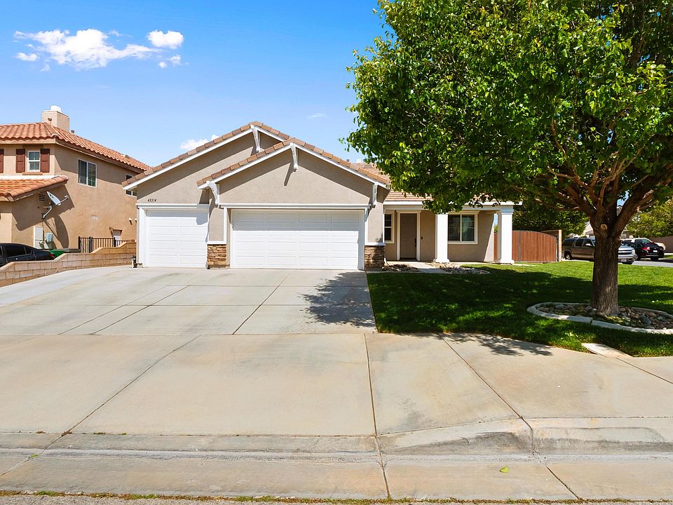 True Pride of Ownership! This stunning single story home has fresh exterior paint and offers 4 bedrooms, 2 full baths and 2,100 square feet of living space. Tall ceilings throughout create an open and spacious environment. The large center island kitchen has upgraded granite countertops with tile backsplash, stainless steel appliances, under cabinet lighting and plenty of cabinet space! The family room has a gas fireplace with a custom mantle, granite hearth and matching tile with the kitchen backsplash. The main living areas and hallways have been upgraded with new flooring and 5 inch baseboards! The master retreat has a vaulted ceiling, new carpet, large walk-in closet, dual sinks, and a jetted tub. The guest bathroom has been remodeled with modern tile flooring, marble countertop, new sinks and faucets. 3 car garage with built-in workbench and shelving plus a wide driveway for parking. The backyard has an elevated planter and stamped concrete pre-plumbed for a BBQ, firepit and spa!