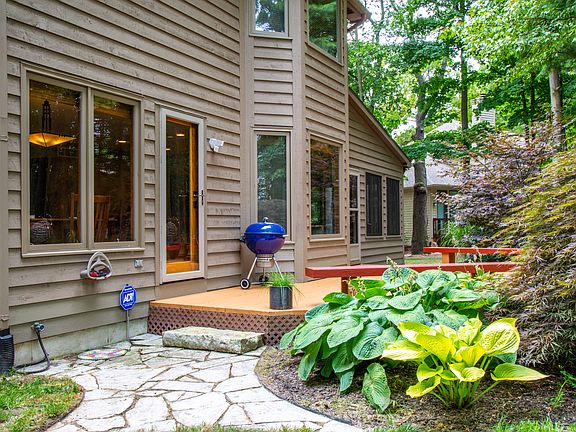 Spectacular custom-built home offers over 3100 sq ft decorated in warm, neutral tones, features 4 BRs, 3 full baths, 4-season rm and 3 car garage. Open floor plan with hardwood flooring throughout most of home. 1st floor office with French doors, built-in cabinets and bathroom access provides a great environment for working at home or could function as a main floor BR with adjacent full bath. Custom kitchen w/stainless steel appliances and granite counters opens to informal eating area. Family room with fireplace. 2nd floor offers the primary suite with custom en-suite bathroom with heated tile floor, plus 3 BRs all with Cathedral ceilings, 2nd full bath and laundry rm. 2-Story foyer and lots of windows provides loads of natural light. Updates include newer roof, architectural front door, garage doors and baths. Basement with daylight window and is rough plumbed for a 4th full bath. Backyard with deck and flagstone walkways. Home is well designed and beautifully maintained.