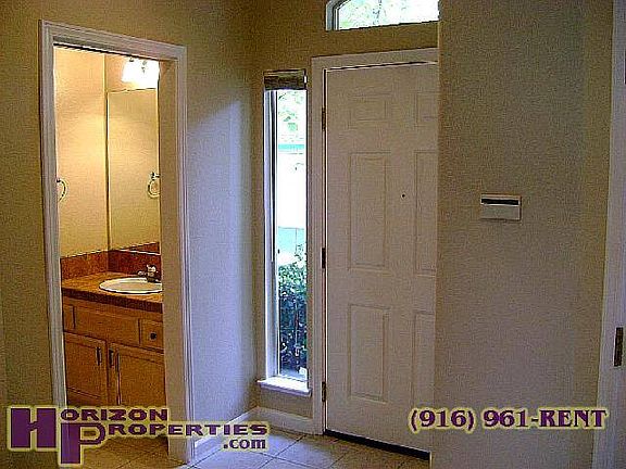 Near Hazel Avenue and Winding Way in Fair Oaks, this modern two-story townhouse offers three bedrooms, two and a half bathrooms, tile flooring, oatmeal carpeting, vaulted ceilings, custom paint, plant lofts, hickory cabinets, recessed lighting, dual pane windows, two-inch blinds and verticals throughout 1395 square feet of living space. The living room has a tile woodburning fireplace, ceiling fan with overhead lighting and a wall mirror. The eat-in kitchen has hickory cabinets and tile counters, and is equipped with gas range with self-cleaning oven, frost-free refrigerator, microwave, dishwasher, double sink and garbage disposal.The master suite has a ceiling fan with overhead lighting, mirrored double-door closet and curtains. The master bathroom has tile flooring and carpet, walk-in closet, tile counter, and shower and tub with glass doors. The second bedroom has a ceiling fan with overhead lighting and French doors to the balcony. The hall bath has a tile counter and shower over tub. The half bath has a tile shower. There is a skylight in the hall. This home has dual-zone programmable central heat and air conditioning, as well as a sprinkler system for fire safety. In the hall there is a laundry area with both washer and dryer. The one-car garage has an automatic door opener. The fenced yard has a patio and a gate leading directly to the pool, comes with full gardening service provided for the front yard, and is equipped with automatic timer sprinklers in front. This home is located in the San Juan Unified School District, in a gated community with a pool shared by only fourteen units. Pets are allowed with approval, but smoking is not allowed in the house. Owner pays for sewer and trash and tenant pays water. Choose a six month or one year lease.For a slide show of all photos for this property, directions, to download an application, or schedule a showing, please see this property on our web site at horizonproperties.com. Please be sure to include your telephone number when emailing us.Thanks for looking at a Horizon Property!