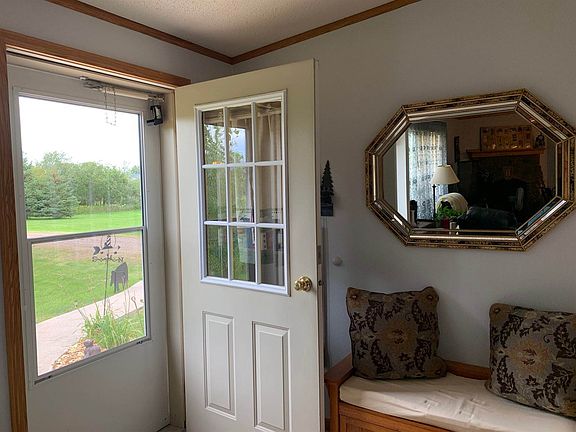 Wonderful country setting on 4.5 acres with the benefit of being close to Moose Lake. This 3 bedroom, 2 bath manufactured home has a terrific 10 x 30 southern facing porch, attached 1 car oversized garage (24 x 30) with ramp for wheelchair or scooter accessibility, a large open living, dining, and kitchen area with gas fireplace as the focal point. Recent updates include a new forced air furnace, central air, roof on the house and garage, carpet in the living room, hallway, and bedrooms. Come enjoy the country and the nearness to town, shopping, school, hospital, I35, area lakes, and the Soo Line trail for recreational fun!