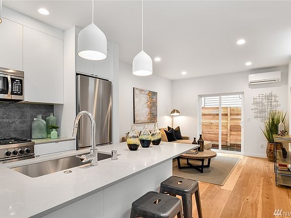 One bedroom condo-alternative - NO HOA! Blok 2's latest in the heart of Wallingford - Is over 100 walk score possible? Gourmet kitchen (Bertazzoni + Bosch appliances), designer lighting, and all the latest efficiencies. Engineered wide-planked hardwoods. Quartz countertops and tiled bath w/ four piece ensuite. Secured gated access from street AND alley. Minisplit heating/AC, tankless hot water. Rooftop deck sprawls the entire footprint. Extra crawlspace storage. Ample on-street parking. Walkable to 5 city bus routes AND the E-Line.