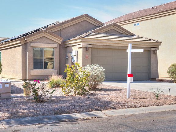 Move in ready with beatiful 2 tone paint and newer carpet!! Classic 4 bedroom, 2 bath home with vaulted ceilings in the Senita community could be easily considered 3 bedroom plus office or library. Kitchen features breakfast bar, pantry, stainless steel appliances, and granite counters. Large master bedroom located away from others with full bathroom, dual sinks, and walk in closet. Sliding door opens to covered patio and lush landscaped private backyard. No neighbors behind! Great for entertaining and relaxing on the weekend. A must see!! *Save money with energy efficient solar panels* Seller currently plays $86/month solar panel lease. Quick access to either the Valley or Casa Grande