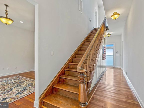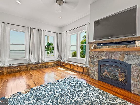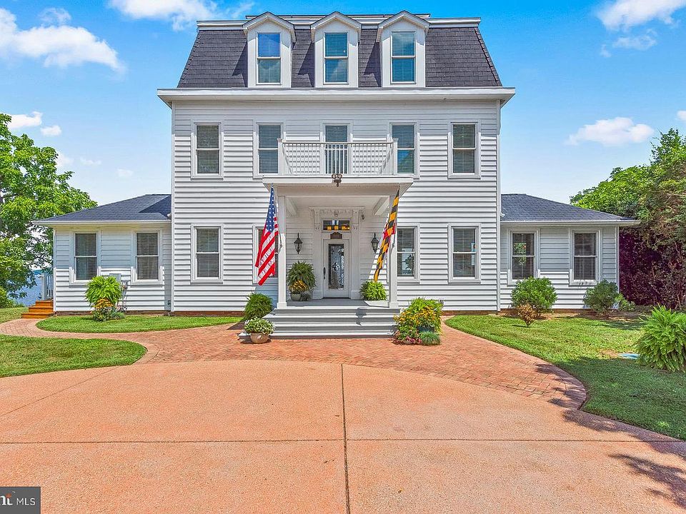 This turn of the century Second Empire style home, with its distinctive Mansard roof, is perched atop a hill, overlooking the broad Patuxent River. Experience charm and a rich sense of history, while enjoying all the benefits of a modern home. This renovated manor features 10.5' ceilings, striking Brazilian Tigerwood floors, custom-built window seats, gas fireplace with stone surround. Rustic English kitchen with vaulted ceiling and exposed wood beams, granite counters, stainless steel appliances, commercial grade hood, and hand-crafted free-standing pantry. Original wood staircase crafted with handmade nails. Side entry to mudroom and household laundry area. Three spacious bedrooms and a large deck complete the second floor, with the entire 3rd floor devoted to the owner's suite. Elegant master bath with ceramic tile floor, marble shower, deep jetted tub, water closet, and walk-in closet. Master bedroom boasts private sitting area,a separate laundry area, floor-to-ceiling dormer windows, 3rd floor Juliet balcony, and access to the widow's walk on the roof. Attractive steel 2+ car garage with carriage-style doors, and fully floored loft above for storage, with terra cotta colored aggregate driveway. Synthetic slate roof. With efficiency in mind, seller installed the solar panels located on both the garage and house, and replaced the siding with 7" insulated vinyl clapboard siding. Septic system replaced in 2011. Generac generator installed, 2012. The heavy lifting is done -- move in, enjoy your private pier, and don't overlook the community pool and playground just down the street.