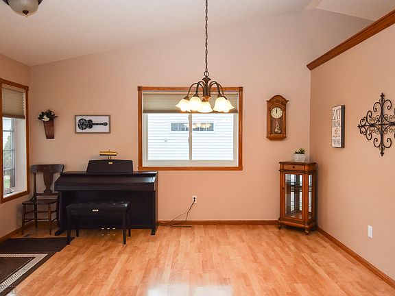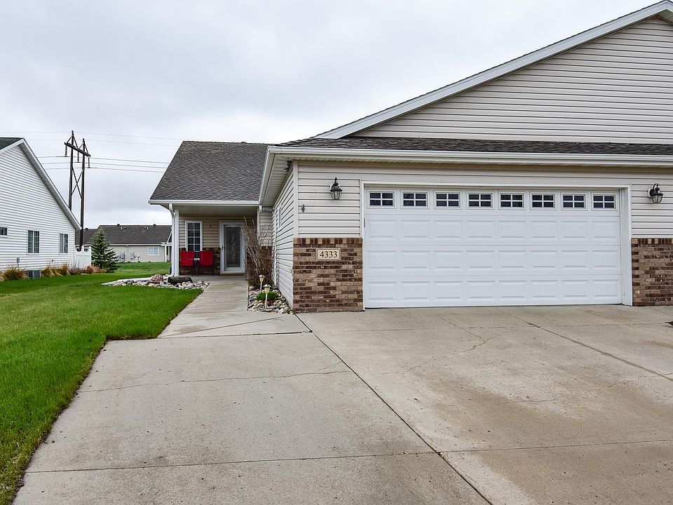 Stunning patio twinhome in Woodhaven near park! No step entry, easily accessible with wide hallways. Spacious kitchen with ample cabinet space, eat-up bar top peninsula, newer stainless steel appliances, and open to the dining and living room. Living room features electric fireplace and French doors that leads into the beautiful flex room that could be used for an office, gym, or hobby room. Large master suite boasts walk-in closet and private bathroom with double sinks and walk-in shower. Enjoy the maintenance free deck, heated garage with floor drain, underground sprinkler system, storage shed, and walking path in backyard. Newer windows, appliances, carpet, and paint.