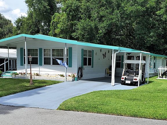 NEWER ROOF, HVAC & WINDOWS IN LARGE, 2 BEDROOM, 2 BATHROOM HOME WITH BONUS ROOM! This home sits on a very large lot and has a lot of curb appeal. Plenty of parking, covered porch with entry to living room and sunroom entry from carport. Lots of space and opportunities here. Bonus room on front of home measures 11'8? X 20' and is currently set up as a third bedroom! French doors lead from this bonus room to dining area and living room. Upgrades to this home include double hung replacement windows, new HVAC 2019, new metal roof 2016, all plywood sub-floors, attractive laminate flooring and so much more! Sunroom located at driveway entrance is spacious, has glass windows and AC and makes a perfect hangout or man-cave. Laundry is located in shed, but seller may take their washer/dryer. If you need a spacious home with plenty of storage and in excellent condition make an appointment to see this one. Located in the age qualified community of Clover Leaf Farms. Located north of the Tampa/Clearwater/St. Petersburg metro area, Clover Leaf Farms is a 55+ retirement mobile home community that is big on amenities. Offering two spacious clubhouses, billiards, shuffleboard courts, pickle ball and catch/release fishing you won't be bored here. There is also a dry sauna, indoor heated swimming pool, and a whirlpool-spa-hot tub as well as a large heated outdoor pool and new fitness center being built. This Brooksville, FL mobile home neighborhood will never leave you wanting. Clover Leaf Farms also provides its residents with a pet friendly environment that includes RV storage, a scenic picnic area, and on-site management. With so much to offer, you can't go wrong when you choose to live at Clover Leaf Farms.