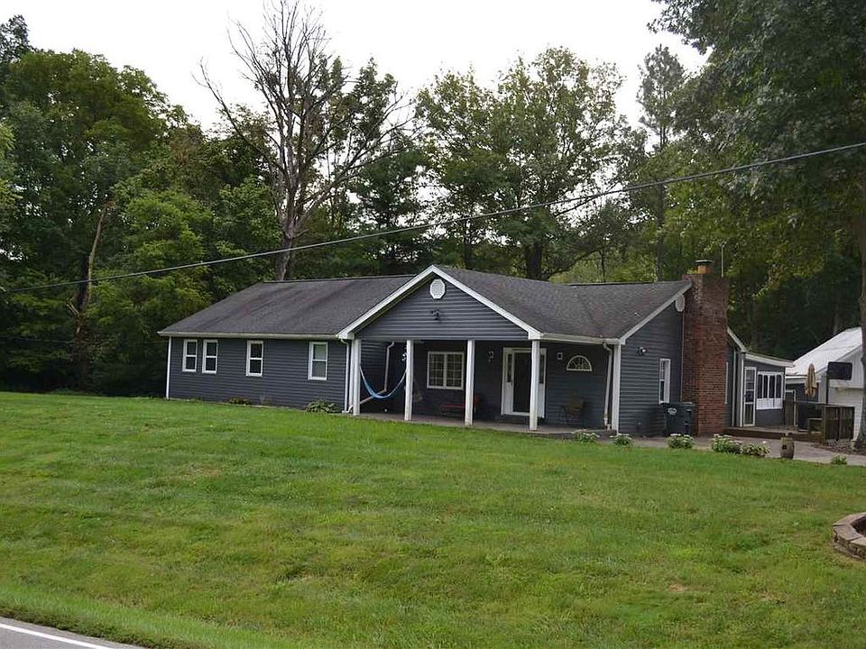 Beautiful setting on 5 acres. This 3 bedroom 2 bath homes offers large living and dining room with with large gourmet kitchen. Home offers covered back porch and detached garage with plenty of storage. The home has in-ground pool ( needs some work including liner) The views from your back patio are priceless. This home is about 10-15 mins to expressway, schools and shopping.
