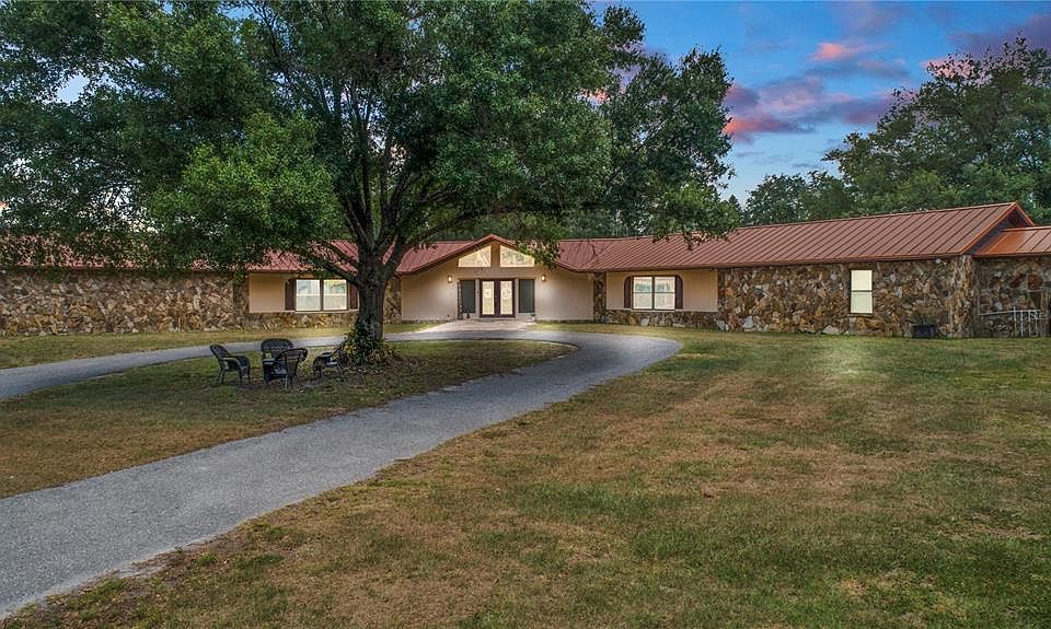 Welcome to this magnificent 5-bedroom, 3-bathroom home nestled on over 11 acres of land. This stunning property offers a host of exceptional features designed to provide comfort, luxury, and convenience. The main house sits on 5 acres with the additional 6 fenced acres of high and dry land that is currently being used as a pasture that comes with a male and female cow and free range chickens, and has its own separate parcel ID. Step inside and be greeted by an inviting interior that exudes warmth and elegance. The spacious living areas are adorned with high-quality finishes and attention to detail, creating an atmosphere of refined beauty. Natural light pours through large windows, illuminating the tile floors and accentuating the open layout. The heart of this home lies in its well-appointed kitchen, boasting modern appliances, granite countertops, wood cabinets, and ample eating space at your large kitchen bar. It is a culinary enthusiast's dream, perfect for entertaining guests.The 5 bedrooms provide generous accommodation for family. Each room is thoughtfully designed with comfort in mind, featuring tile floors, and ample closet space. The master suite offers a private oasis, complete with a recently remodeled en-suite bathroom with large shower with body jets and built in seat and jacuzzi tub. One of the highlights of this property is the screened-in saltwater pool, providing a tranquil retreat for relaxation and entertainment. Featuring a sunroom with it's own Mini-Split AC unit, the perfect place to relax after a fun afternoon swimming. Overlooking your property, the pool with stone waterfall and spa area are the perfect place to unwind, and cool off. In addition to the pool, the property features three AC units, 2 of which have been recently replaced, ensuring optimal climate control throughout the home. For added peace of mind, this home comes equipped with an 800-gallon propane tank that fuels the 47 KW Cummins Backup Generator. This feature ensures uninterrupted power supply during unforeseen outages, providing security and convenience for you and your loved ones. Car enthusiasts will be delighted by the free-standing 9-car garage with three bay doors, a car lift and your very own Kubota Tractor with brush hog, bail spear, mower bucket and auger with 4 & 6 inch bit. This expansive space offers ample room for parking, storage, and any projects or hobbies you may have. Whether you're a car collector or simply need extra space, this garage is a true haven for automobile enthusiasts. Additionally, this property features a separate mother-in-law suite, providing a private living space for extended family or guests. Complete with its own kitchen, bathroom, and living area, this suite offers flexibility and independence within the home. The newer metal roof adds durability to the property, ensuring long-lasting protection against the elements. Located on over 11 acres, the property provides ample space for outdoor activities, gardening, or simply enjoying the serene surroundings. This expansive land offers privacy, tranquility, and the opportunity to create your own outdoor oasis. This property offers all NEW windows, NEW drainfield, NEW 500 FT deep well and 2 septics both serviced 3 months ago. Don't miss the chance to own this exceptional home, where luxury, functionality, and natural beauty harmoniously converge. Schedule your private tour today and experience the splendor of this remarkable property.