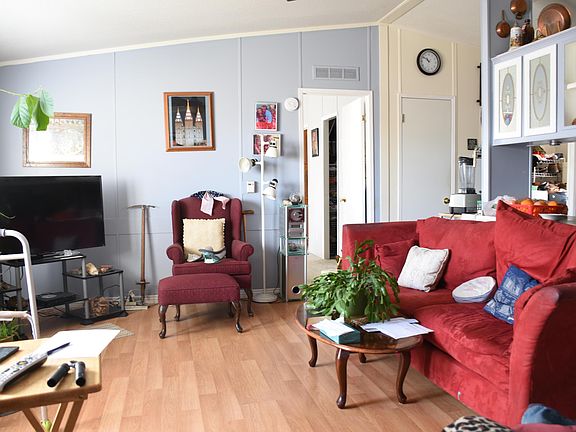 Great manufactured home on a half acre! Featuring 3 bedrooms and 2 bathrooms with an open floorplan. Masterbedroom has a double vanity with a tub and shower. The backyard has a covered patio, a beautiful handmade waterfall, large grassy areas with 2 sheds. There are over 11 fruit trees and lots of space for a garden, several fruit bushes and a whole wall of grape vines. Garden areas have a built i