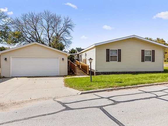This 1900sqft Wick mobile home has 3 bedrooms and 2 baths, a 2- car detached garage, a 10x20 dutch barn shed w/ loft, a wheelchair accessible wooden ramp to the front door, all appliances stay, including washer/gas dryer! Home warranty included for the first year of ownership - want to move the home? The warranty follows it to the new location! Lot rent is $385/month + utilities (water/sewer/trash paid thru park). No vicious dog breeds allowed; 40lb weight limit, background check required to live in park. Call agent to schedule a showing today! This home can be yours before Christmas! Listing Agents: Sara Elmer:913-481-8425 or Christina Anderson:515-227-0665.