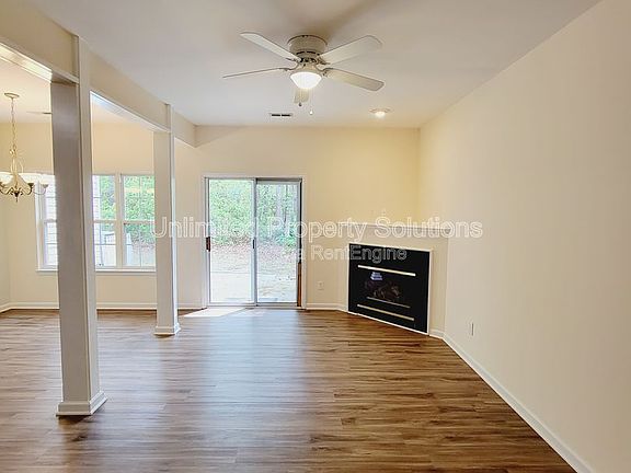 HEATHFIELD HALL - 3BD/2BA - AVAILABLE TO VIEW 4/25- Two story townhome - approx 1425 sqft - Rent includes water/sewer/trash/lawn maintenance - Open floorplan with living room open to kitchen and eat in kitchen area, separated by decorative columns. Living room has newer laminate flooring, gas fireplace and sliding glass door that leads onto patio. Master bedroom on first floor with master bathroom, two bedrooms upstairs. All bedrooms are carpeted. There is also a flex room upstairs ideal for office/study or whatever you need extra space for. There is a storage closet off back patio. (microwave in pictures not included).