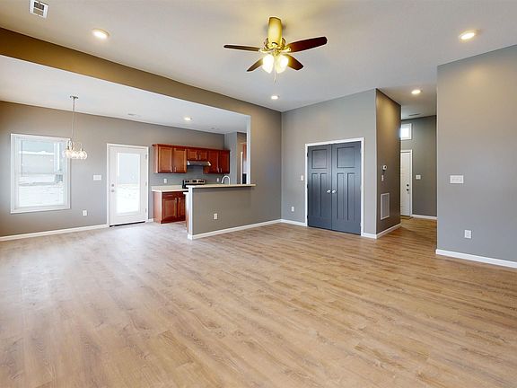 A brand new, zero entry home in Shawnee Heights School District is just what you need. This home boasts ten foot ceilings in the living room and main entry. The primary bedroom has 9' coffered ceilings, an en-suite bath, and a large walk-in closet. Three additional bedrooms line the front of the home, near an additional full bathroom. You will love the 2 car garage and covered patio off of the dining room. Virtual tour is available or schedule a private showing with your Realtor today!