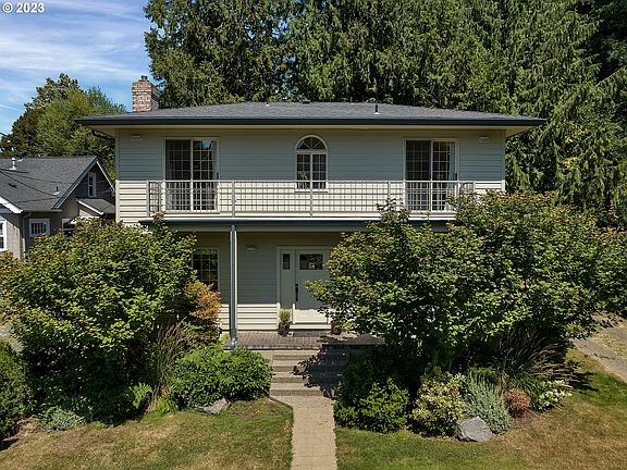 This light-filled 1991 contemporary sits pristinely above one of Multnomah's quiet, wooded streets and is loaded with features, including high ceilings throughout (vaulted on the second floor), large double-paned Milgard windows fitted with custom blinds, and white oak floors in the main rooms. Spacious room sizes include a living room with a built-in library and storage, a gas fireplace, and double doors to the private deck and saline hot tub. The kitchen opens to the backyard and dining room, boasting quartz countertops, high-end stainless appliances, and a large dining area. The laundry room off of the kitchen includes built-in cabinetry and pantry shelving and also serves as home to a brand-new high-efficiency furnace (96%) and utilities. A guest bath is tucked nicely into the first floor. Upstairs has the feel of a tree house, with large windows and wooded views in all directions. Each bedroom has sliding doors to a Juliette balcony overlooking the neighboring woods. The master includes four fitted closets, and the second bedroom has three. A built-in library/office looks into the trees and has a skylight. Outside, a newly installed irrigation system keeps the surrounding mature gardens green. The cedar-sided exterior was recently painted, including the spacious 400 square-foot garage, tucked safely behind the home with a turnaround for easy access. The house is only two blocks from Woods Park and the 44 bus line. The new bike and sidewalks on Capitol make access to Multnomah Village easy for all, and the neighborhood is on the SW Trail system. Enjoy annual block parties and a real community in this wonderful neighborhood.