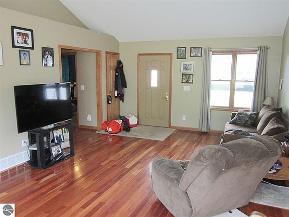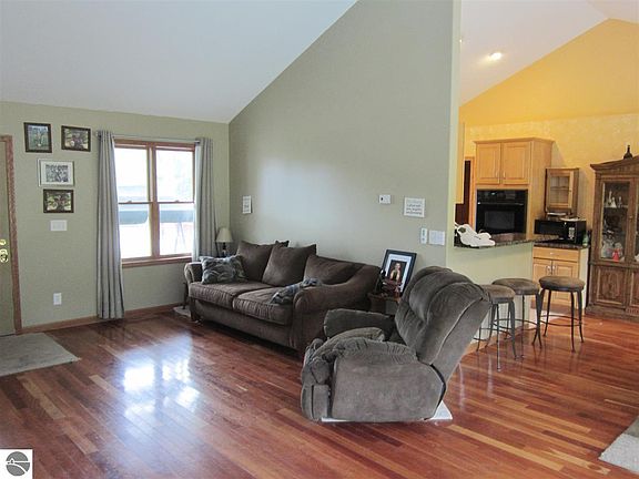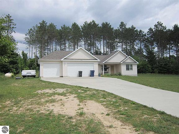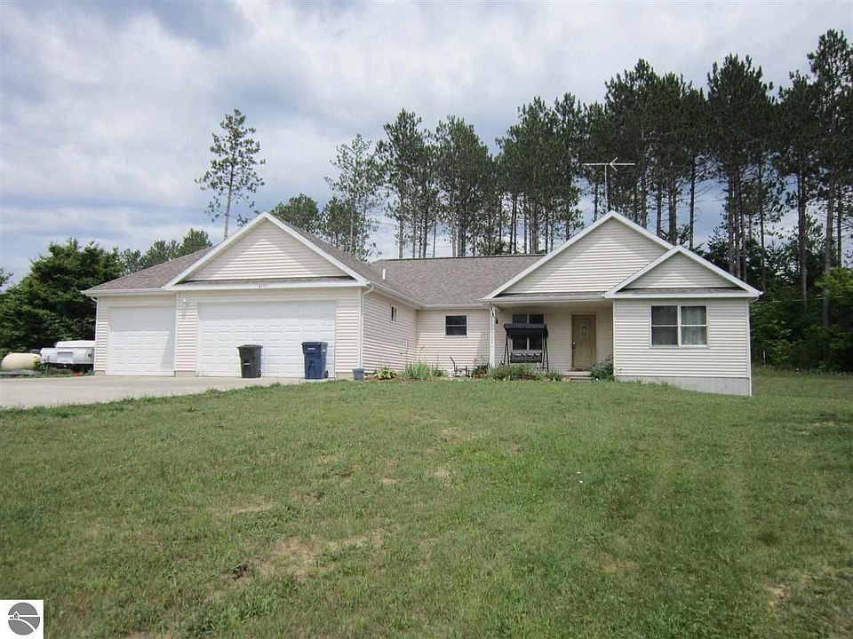 Lots of space for the price! Situated on a 4.3-acre parcel, this 2005-built ranch home features an open floor plan on the main level and a total of 5 bedrooms. Highlights of the main level include hardwood floors under cathedral ceilings, granite counters in the kitchen, a generous dining area, a private master suite with a glass bowl sink and extensive tile work in the bath, a main level laundry room and French doors off the living room to what could be a 3rd bedroom or a den. The lower level features 2 conforming bedrooms (one has a walkout door and would be suitable as a family room, along with a full bath, another non-conforming bedroom, and lots of storage. Relax on the back patio in complete privacy, as this home is well removed from the road and guarded by tall trees.