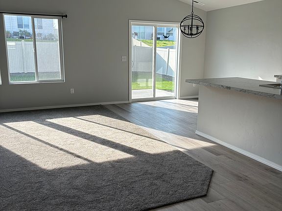 Brand new gorgeous home nestled in the South Nampa, ID. This family-friendly residence offers 4 bedrooms (one room is a flex room), 3 bathrooms, and a 3-car garage, providing a large comfortable living space. Oversized windows flood the home with natural light, creating a bright and inviting atmosphere. The designer kitchen features a spacious counter, ample cabinet space, a pantry, and a breakfast bar, complete with appliances for added convenience. The living room serves as a cozy and central gathering space in the home. Washer & Dryer included. Outside features a patio area overlooking a fully fenced backyard providing privacy and a delightful outdoor space for relaxation and entertaining. Call for a private showing. Available Now! Tenant pays all utilities. Tenant pays for $35 for weekly mowing and trimming during season.