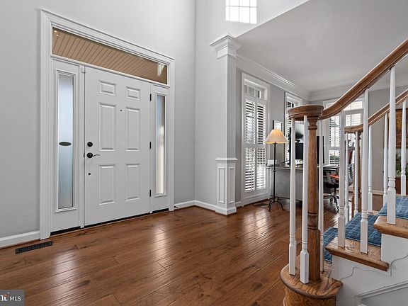 Open House Saturday and Sunday 12-2! Beautiful brick-front, 4-bedroom, 4.5-bath home with over 5,500 square feet of living space, situated on a private lot that backs to trees and fronts a serene field. The entryway opens to a grand two-story foyer, leading to the formal living and dining rooms adorned with crown molding and shadow box finishes. The soaring two-story family room is bathed in natural light through a wall of Palladian windows and features a cozy gas fireplace. The eat-in kitchen boasts an 8-foot custom granite-topped island, ample counter space, a backsplash, stainless steel appliances, abundant cabinetry, a walk-in pantry, and a built-in desk area—perfect for entertaining! A private office with glass doors is conveniently tucked away. Both the main and upper levels feature engineered hardwood flooring, while custom plantation shutters frame the main level windows. Updated lighting and door hardware enhance the home's modern appeal. The owner’s suite is upstairs, offering a cathedral ceiling, sitting room, two closets with built-in shelving, and a renovated ensuite bathroom. The spa-like bath features quartz-topped dual vanities with soft-close drawers, a freestanding soaking tub, a frameless shower, and floor-to-ceiling tile. Three additional bedrooms are also located upstairs—one with a private ensuite bathroom and two that share a Jack-and-Jill bathroom with dual sinks. The lower level is an entertainer’s dream, featuring luxury vinyl plank flooring, an updated full bathroom, and an incredible private home theater with a stone wall and built-in shelving. The backyard provides a tranquil escape with a patio and a sprinkler system for easy lawn maintenance. Conveniently located near major commuter routes, including Route 50 and Route 66, with abundant shopping, dining, and entertainment options nearby.