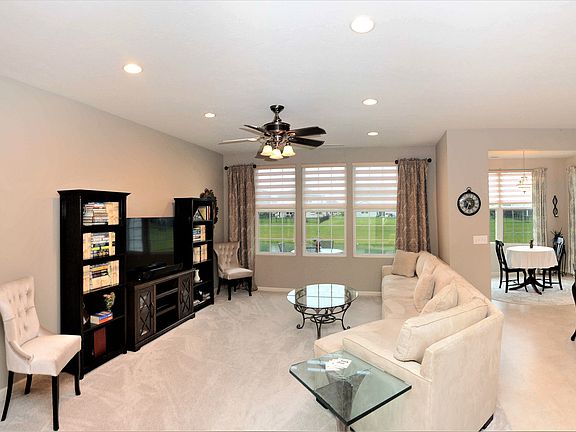 BETTER THAN NEW - Move-in ready ranch on a pond! Contractor-owned home with many custom touches. Immaculately clean and maintained; new paint and carpeting. Shows like a model with latest designer colors. 9-foot ceilings. Large open area - Kitchen, Living Room, Dining Room, Sunroom, built-in Office. Kitchen has SS appliances, including double ovens and gas cooktop; huge granite island, custom glass backsplash, breakfast bar, large walk-in pantry. Lovely Owners Suite with walk-in closet. Beautiful windows bring in lots of natural light and views of the pond and 12' x 20' cement patio. Large Laundry Room with cabinets, utility sink, folding counter. Heated tandem garage provides extra parking or storage. Generous storage. Smoke and pet free.
