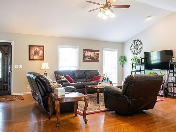 Outstanding One-Level Brick Home with Oversized Living Rm, King Sized Primary Bedroom, a Huge Bonus Room and a 26'x28' Garage. The Lot is over an acre and the large back yard has an above ground pool with deck and borders a small creek. This home will meet your checklist with hardwood & tile floors, vaulted ceilings, neutral paint, white cabinets with granite leather countertops. The primary suite includes sitting space, a walk in shower, jacuzzi tub, and walk in closet. The home also includes a whole house vacuum.