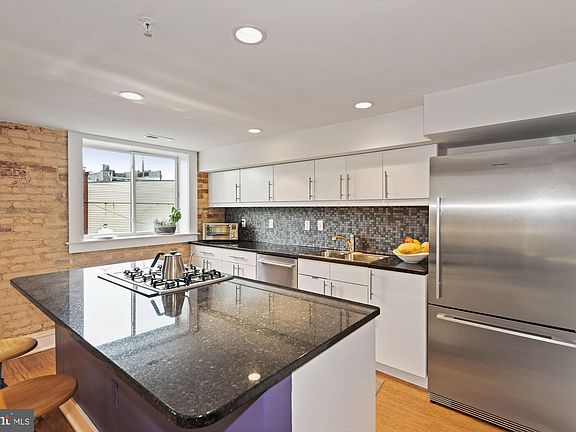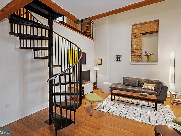 Live, work and play in this expansive and intimate lofted 1-bedroom and den home in the heart of Hyattsville's vibrant Arts District. Originally a firehouse, this unique building was converted to the Firehouse Lofts Condominium in 2012. Architecturally unique, this unit features soaring ceilings, oversized windows and skylights, exposed brick walls, and an iron spiral staircase to the second level sleeping and work spaces. When you enter the home, you are greeted by light that pours in from the wall of east-facing windows and from two skylights overhead. The unit boasts almost 1,200 square feet of flexible living space and the first floor offers ample room for designated living and dining areas. The kitchen is tastefully modern with a gray one-inch square tiled backsplash, granite countertops, and stainless appliances. A window adjacent to the kitchen helps the kitchen feel warm and intimate, while connected to the expansive main level living area. There is a convenient half bath and closet for storage next to the kitchen on this first level. Medium brown bamboo floors are warm and beautifully cared for throughout the home. Upstairs, the home is divided into three intimate spaces, each overlooking the living and dining areas below. The spiral staircase lands in the den area. Here, wall-to-wall closets provide ample storage. To the right of the stair, a nook elevated above the rest of the home offers the perfect spot to slip away. The master bedroom is tucked privately along the east wall with its own window. Smartly arranged, the full bath upstairs may be accessed by either the master bedroom or the den, allowing for many different uses of the space. This home comes with assigned garage parking. There is a common "secret garden" at the interior of the building where residents are invited to be outside and enjoy the day with a blanket and a book in privacy from the street. The area offers multiple commuting options- you can travel by car, train, bus, or bicycle. Hyattsville is a short drive into D.C. and you can take advantage of the West Hyattsville and PG Plaza Metro Stations, the MARC train at Riverdale, the much-anticipated Purple Line, and the bus lines along Baltimore Ave./Rhode Island Ave. Within a block is the mixed use walking and biking Trolley Trail which connects you to Riverdale and College Park. The Northwest Branch runs two blocks south of this home and connects to the Anacostia Tributary Trail Network. Cycle along the Anacostia River for work, for pleasure, or to see a ball game at Nationals Park. If your wheels need inflating, the team at Arrow Bicycle is there to keep you rolling. Vigilante Coffee, Hyattsville's home-grown, award-wining roastery is your neighbor and a community gathering space. If food and spirits are your thing, you're in luck - Franklin's Brewery (and toy store!) is one block away. Pick up a pizza and a growler or bottle of small batch rye. Pizzeria Paradiso, Streetcar 82 Brewery, Sangfroid Distilling, and Busboys and Poets all share the neighborhood. Hyattsville is home to a vibrant arts scene, and you can live right in the middle of it all in this unique home.